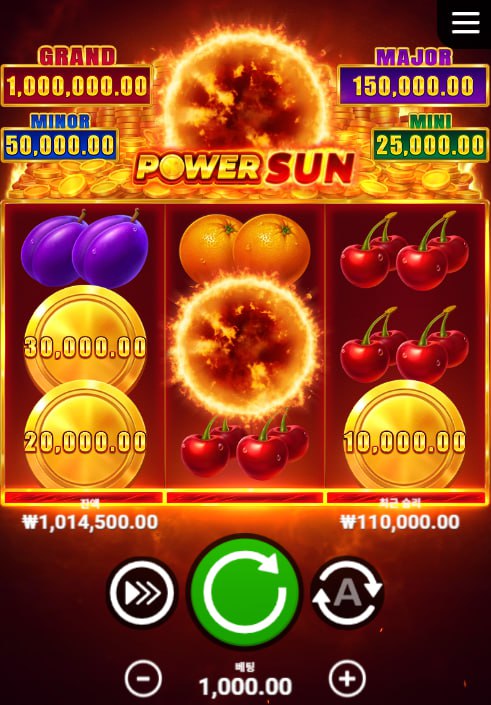 천원 배팅으로 돌렸는데, 중앙에 파워 썬 심볼 터지더니만 금화 심볼들이 양옆에서 줄줄이 붙어서 수익봐버림 ~~~~~~~기모띠