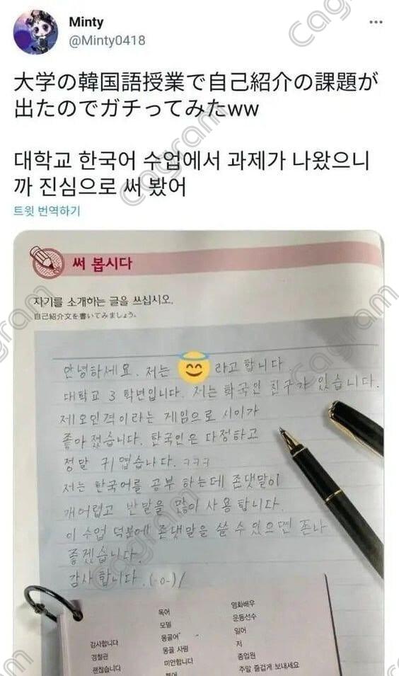 더빠르다님의 댓글 더빠르다쪽지보내기 메일보내기 자기소개 아이디로 검색 전체게시물쪽지보내기 메일보내기 자기소개 아이디로 검색 전체게시물 작성일 2024.09.07 23:38 한국어 수업 ㅋㅋ 한국어 수업 ㅋㅋ