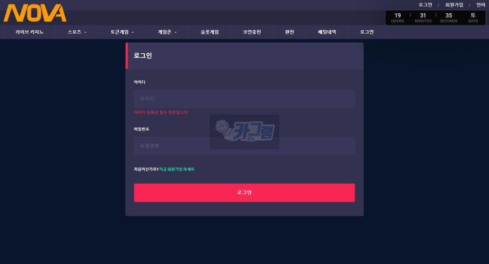 카지노 검증 커뮤니티 카그램입니다. 저희 카그램에서는 온라인카지노 노바 먹튀 제보를 받았습니다.